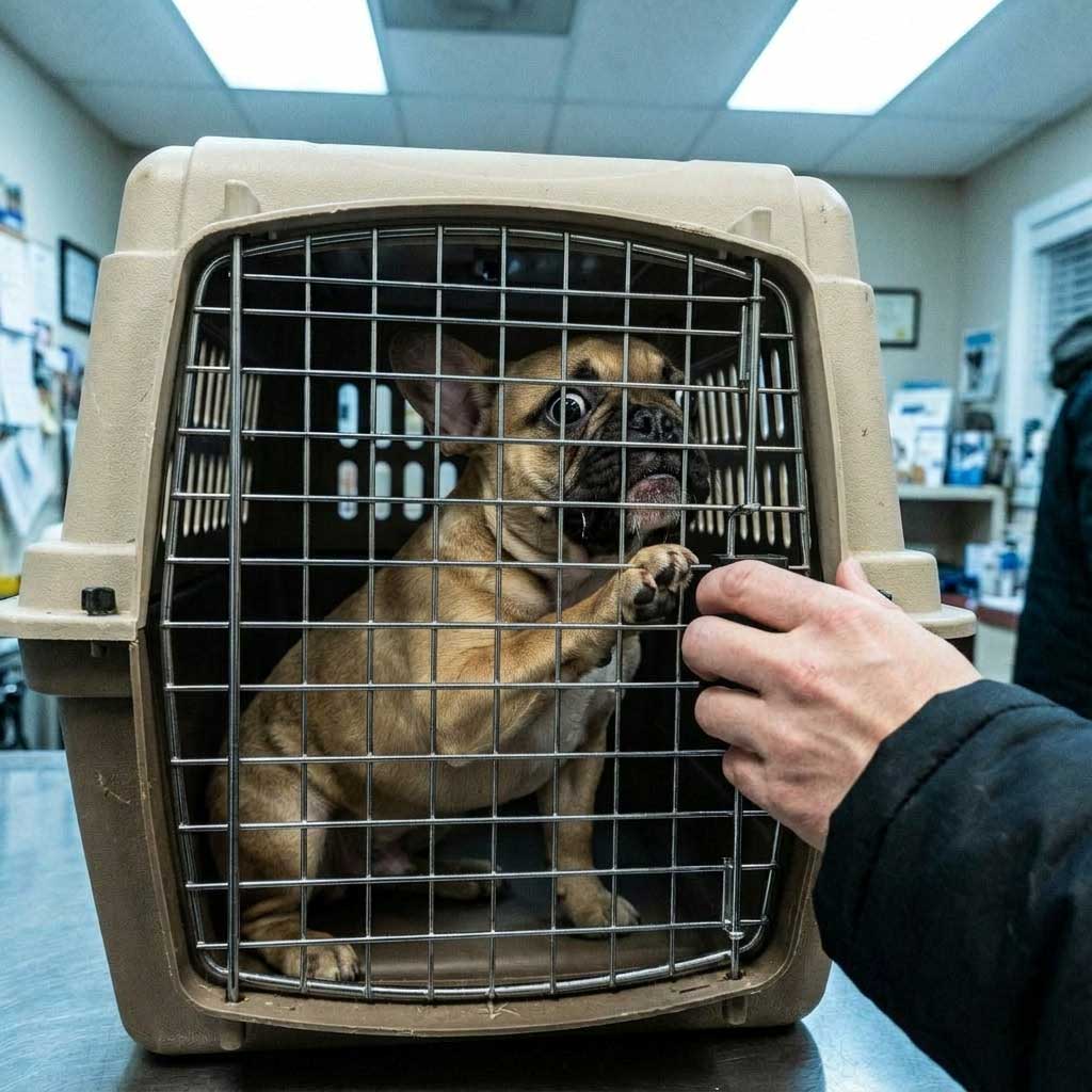 Traditional plastic carriers stack stress triggers all at once — separation, instability, and forced loading. For many dogs, that combination leads to panic, trembling, and resistance before the trip even begins.